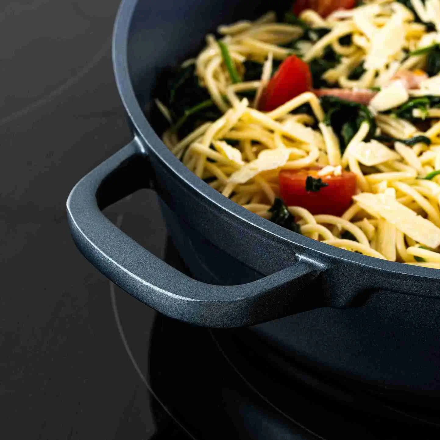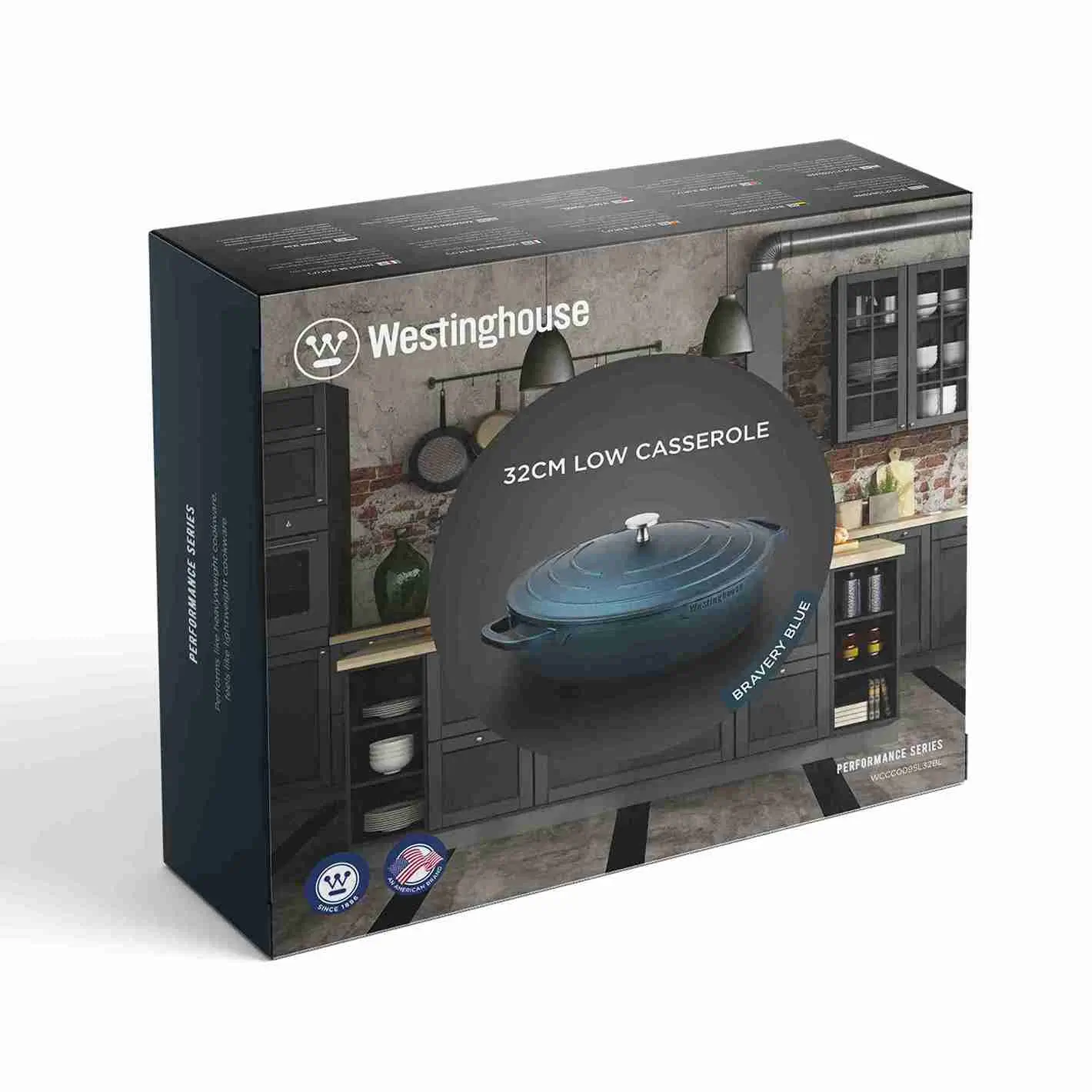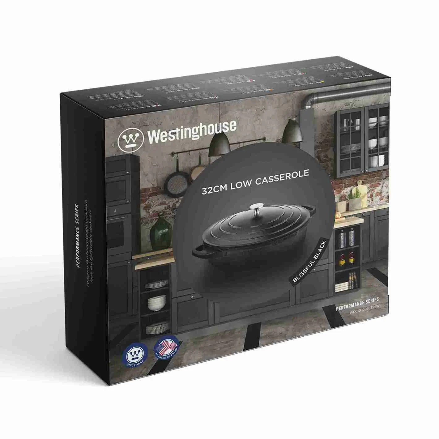 Cook bigger, serve easier. The Westinghouse Performance Series low casserole (32cm) is built from cast aluminium for efficient heat conduction, finished with a heat-resistant exterior coating, and lined with a durable 3-layer PPG QuanTanium non-stick interior for everyday cooking.