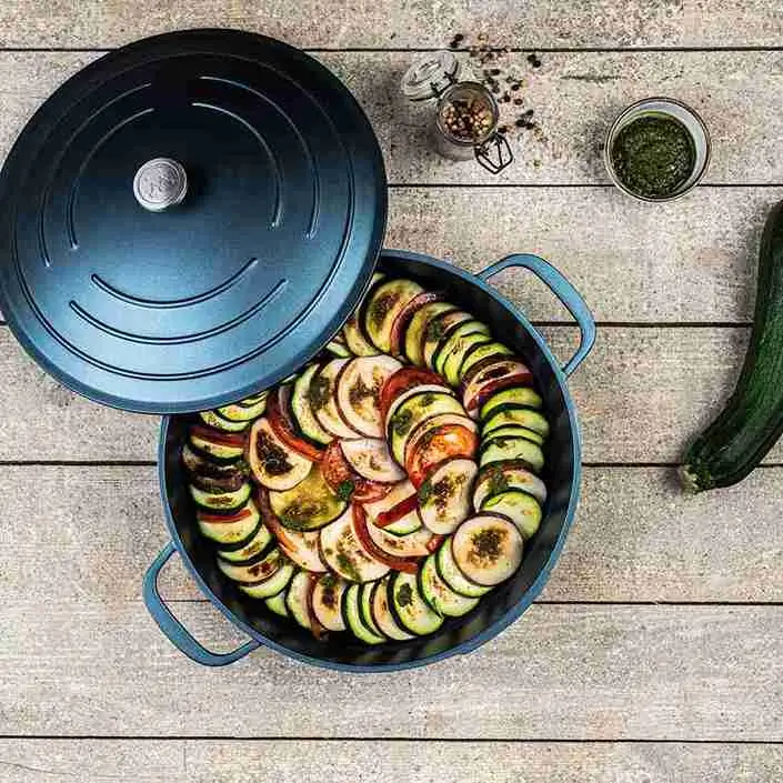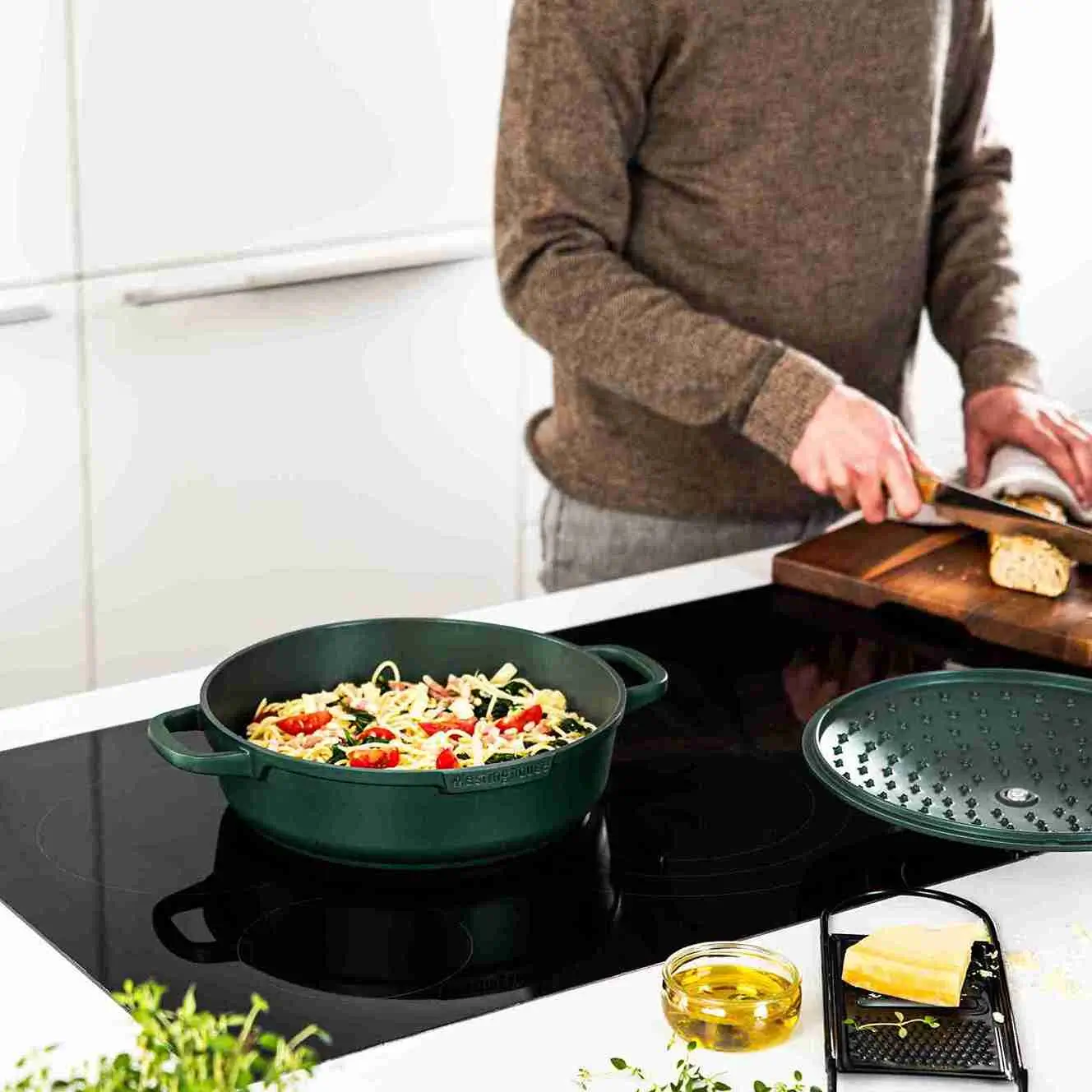 With a family-size 5.8L capacity and a matching lid, it’s designed for stews, sauces, pasta dishes, and one-pot meals—on most hob types including induction, and in the oven for finishing.Official color options: Rebel Red / Bravery Blue / Gracious Green / Blissful Black.