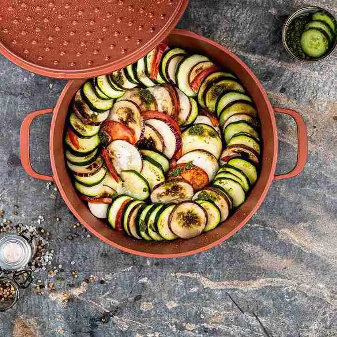 • Oven safe up to 230°C + dishwasher safe – Move from hob to oven for finishing, then clean up with less effort.