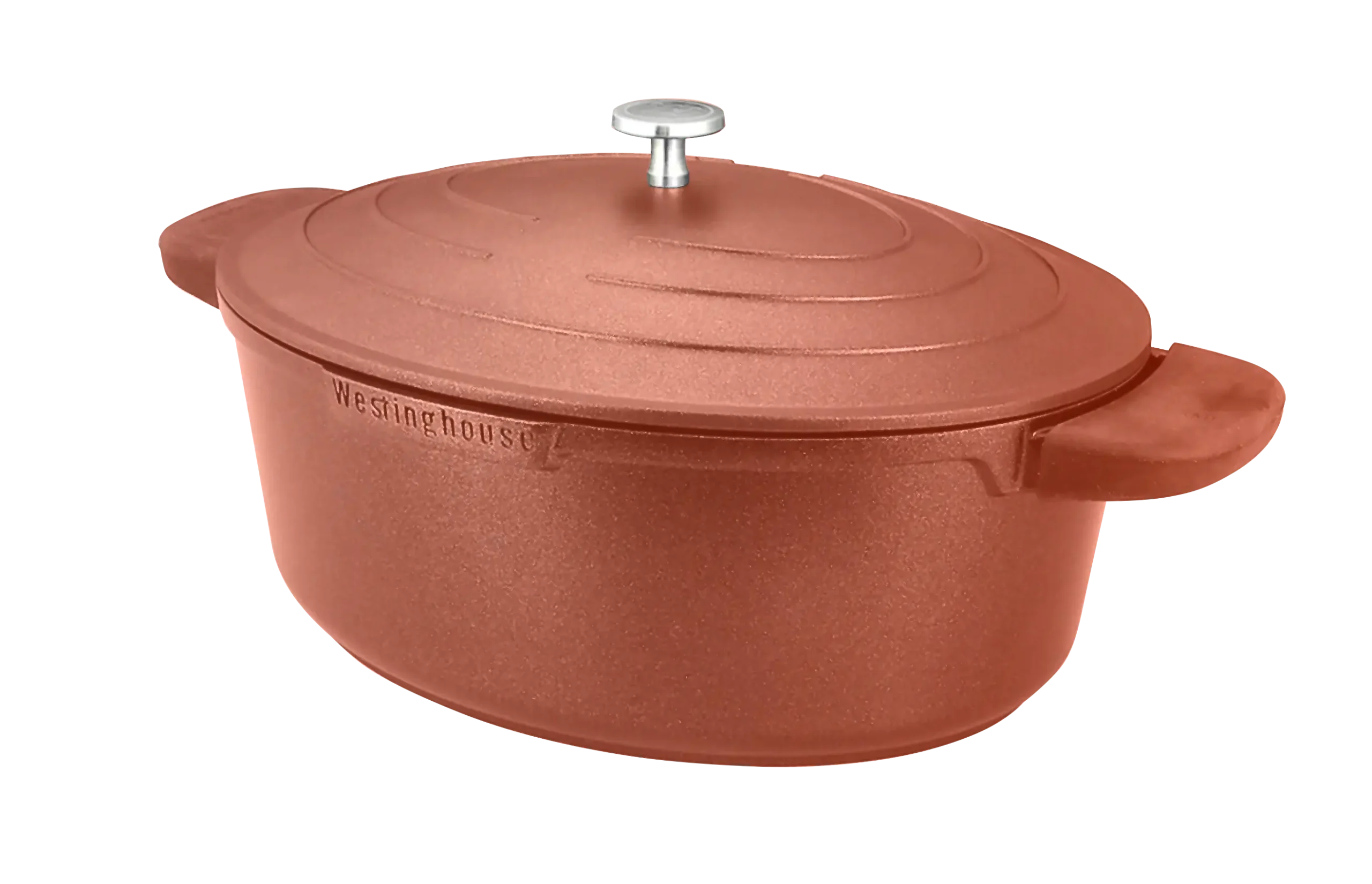 روستر ويستنغهاوس 32 سم بغطاء من الألومنيوم المصبوب بطلاء QuanTanium غير لاصق 3 طبقات لسهولة الطهي والتنظيف. قاعدة مناسبة للحث وآمن للفرن حتى 230°م مناسب للتحمير والطهي البطيء ووجبات “صينية واحدة”.